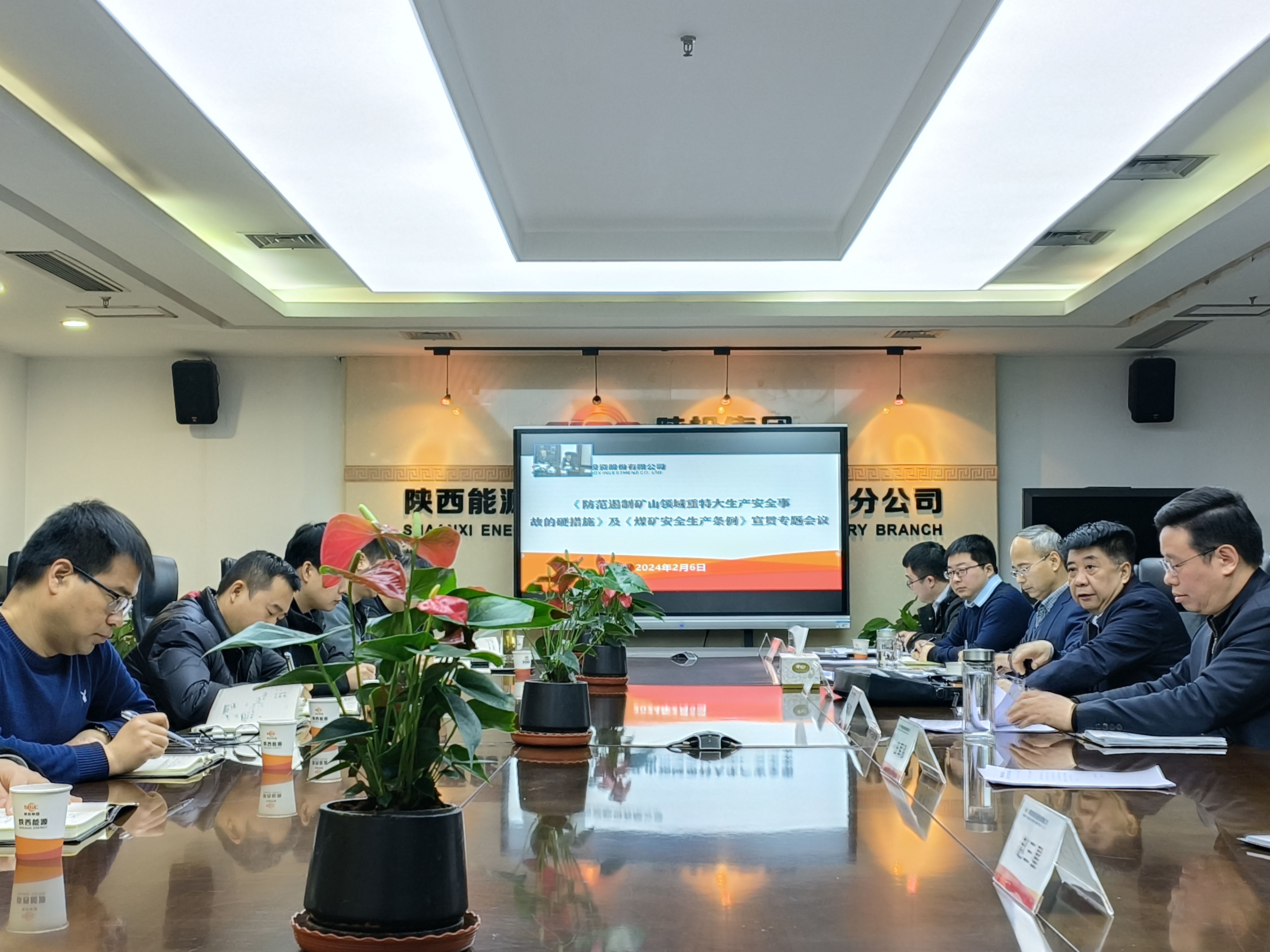 2月6日,william威廉中文官网学习宣传贯彻《防范遏制矿山领域重特大生产安全事故的硬措施》(以下简称硬措施)及《煤矿安全生产条例》(以下简称条例)专题会议在陕西投资大厦16楼会议室召开,会议全面解读了《硬措施》《条例》,观看学习了安全警示教育片,公司总经理、安委会主任王栋作总结讲话。