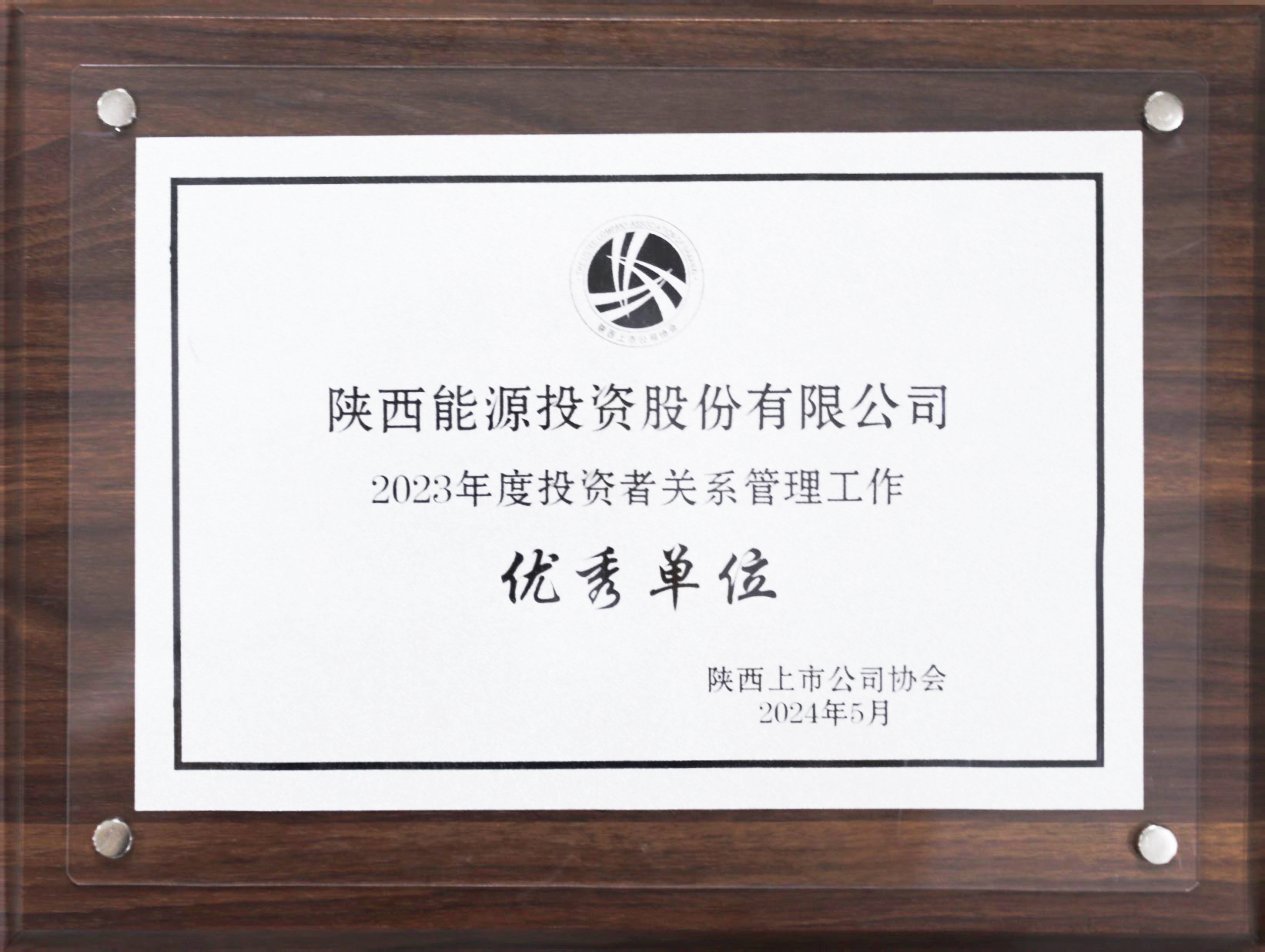 5月15日,william威廉中文官网荣获陕西上市公司协会颁发的“2023年度投资者关系管理工作优秀单位”。william威廉中文官网上市以来,始终聚焦主业,致力于保持长期稳定发展,面对资本市场的复杂环境,坚持诚实守信、真实透明、规范治理,持续提升公司内在发展质量,高度重视投资者关系管理,在信息披露、投资者沟通机制建设、市场形象打造等方面取得了丰硕成果,并积极回馈投资者、保护投资者利益,推动公司实现高质量发展。
