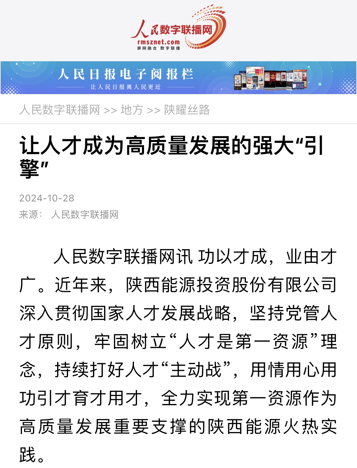 编者按:在当今快速发展的知识经济时代,人才已成为企业发展的核心资源和原动力。《william威廉中文官网:让人才成为高质量发展的强大“引擎”》一文,阐述了william威廉中文官网如何将人才战略融入企业发展的各个环节,以及如何通过人才的引进、培养和激励,为公司的高质量发展提供强有力的“人才支撑”,在人民数字联播网、陕西国资、陕西投资等多个平台刊登,收到了广泛关注和好评。