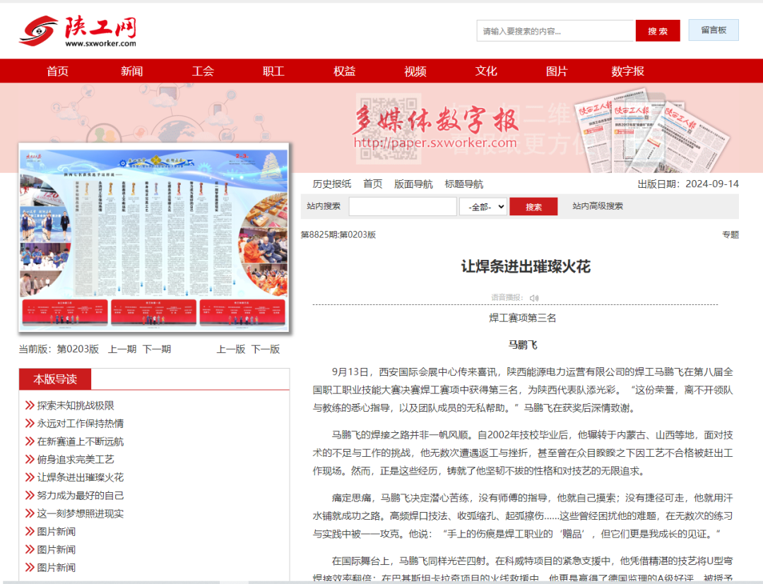 电力运营马鹏飞事迹登上陕西工人报