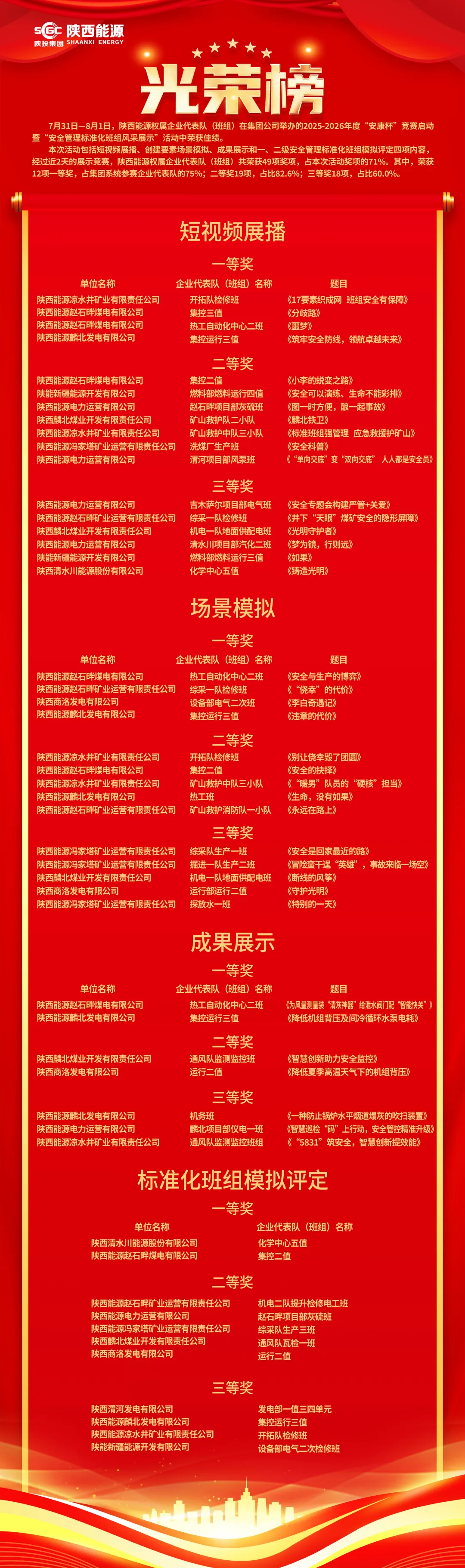 公司权属企业在集团公司2025—2026年度“安康杯”竞赛启动暨“安全管理标准化班组风采展示”活动中荣获佳绩