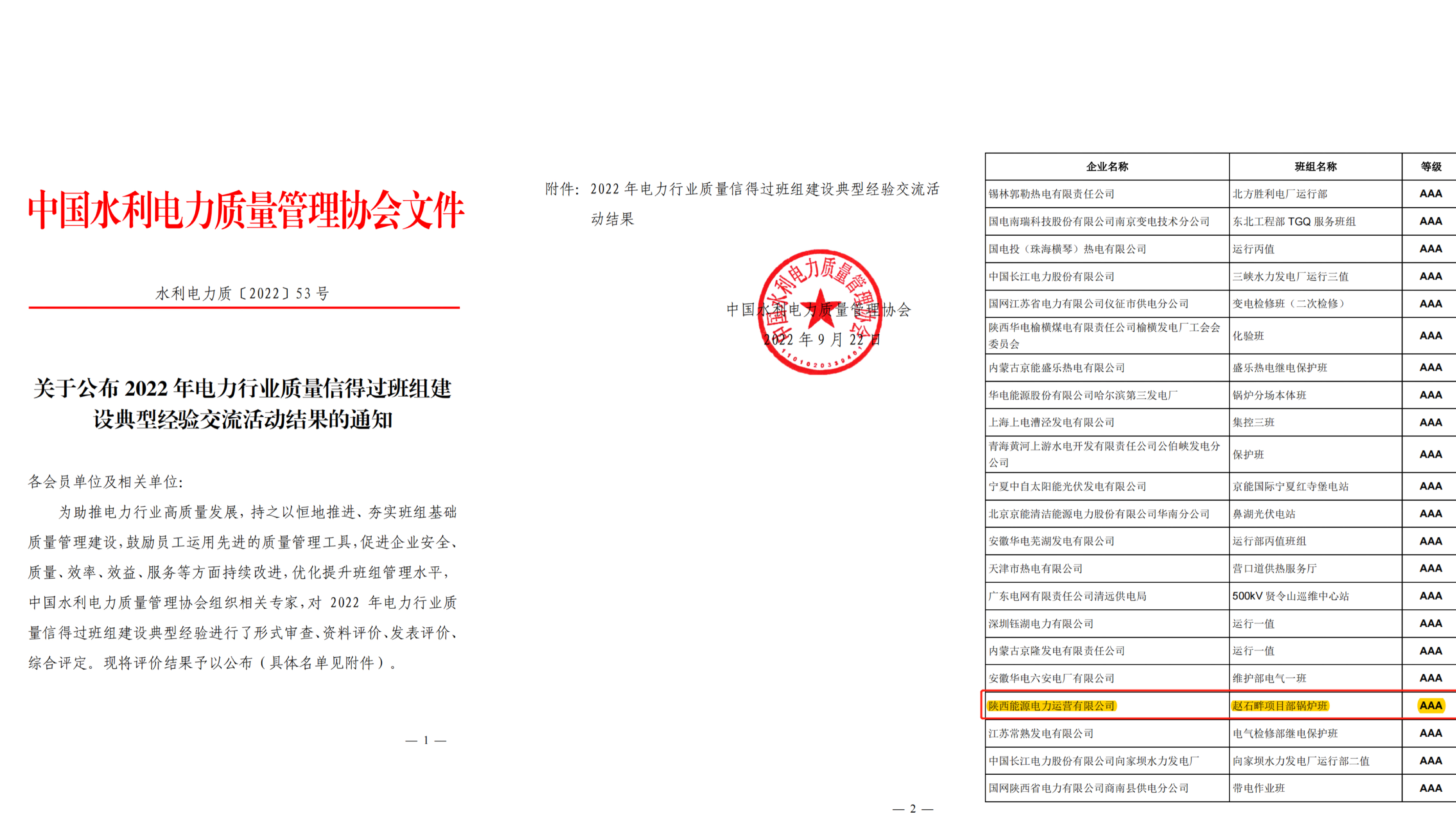 日前,电力运营公司赵石畔项目部锅炉班从全国范围内发电、供电、电建、勘测设计及制造行业等单位近300个班组中脱颖而出,被中国水利电力质量管理协会评为AAA级质量信得过班组。