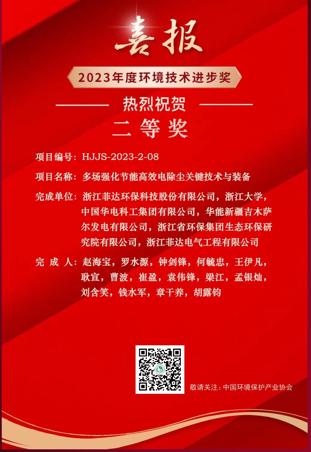 近日,中国环境保护产业协会发布2023年度环境技术进步奖授奖项目名单。由吉木萨尔发电参与完成的多场强化节能高效电除尘关键技术与装备项目荣获2023年度环境技术进步奖二等奖。