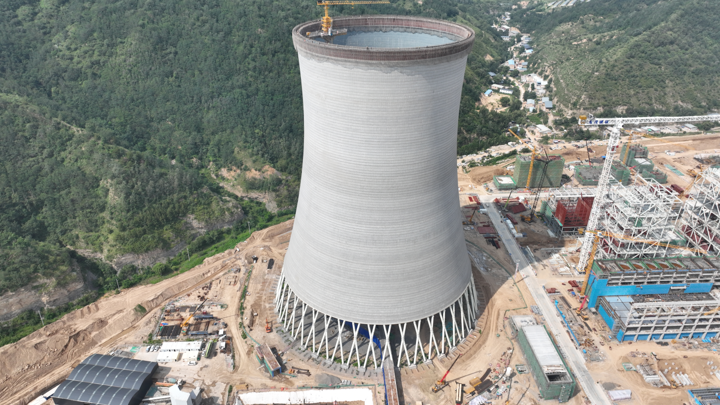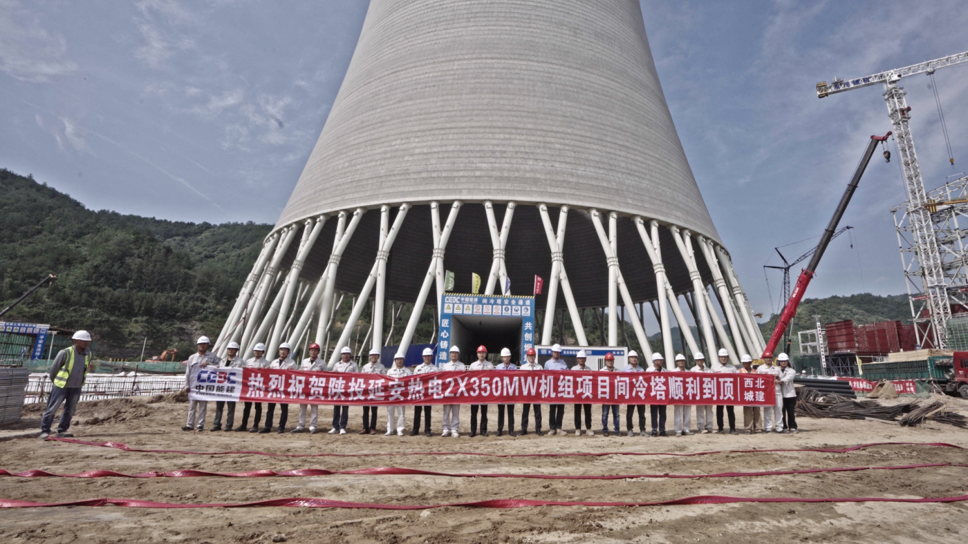 7月31日,延安热电二期项目2×350MW机组迎来重要里程碑——总高183米的间冷塔随着最后一罐混凝土浇筑完成,提前35天成功封顶。这一关键节点的圆满完成,为后续机组顺利投产奠定了坚实基础。